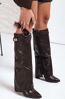Női tűsarkú csizma széles felsővel fekete Dstreet ZY1116 ZY1116