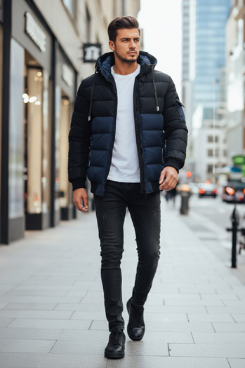 Férfi steppelt bomber kabát fekete TX2213