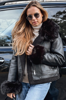 Női bőrdzseki műszőrmével fekete Dstreet TY5244