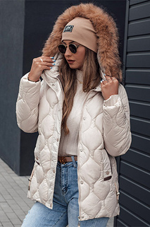 SNOWMISS női télikabát steppelt bézs színű, kapucnival Dstreet TY5000