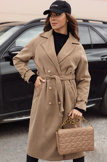 Női hosszú kabát övvel SLIMFOTA camel Dstreet NY0746