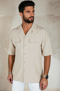 Férfi rövid ujjú bézs színű ing Dstreet KX1061