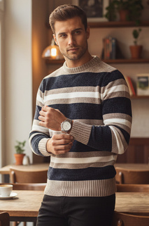 Férfi csíkos pulóver világos barna Dstreet WX2282
