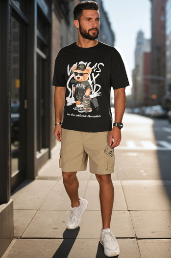 Férfi szövet harci rövidnadrág fekete Dstreet SX2509