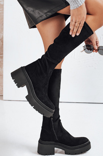 Kozaki damskie zamszowe na grubej podeszwie czarne Dstreet ZY1210