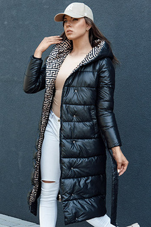 Női VELVETTI hosszú steppelt dzseki kapucnival, megfordítható fekete Dstreet TY4654