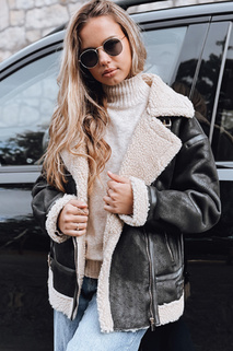Női szőrme kabát kapucnival fekete Dstreet TY5276