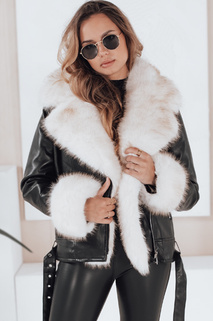 Női téli bőrdzseki műszőrmével fekete Dstreet TY5212 TY5212