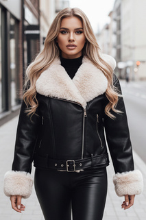Női téli bőrdzseki BELLCIAO fekete és bézs Dstreet TY4685
