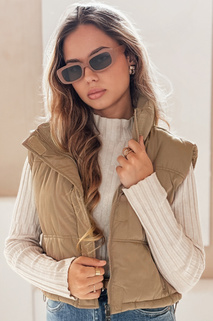 Női steppelt sötét bézs mellény Dstreet TY5196
