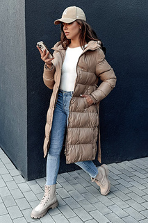 Női VELVETTI hosszú steppelt kabát kapucnival, megfordítható bézs Dstreet TY4653