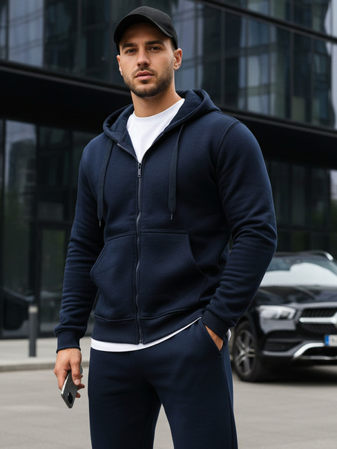 Nyitható férfi pulcsi kapucnival gránátkék színben BX2195
