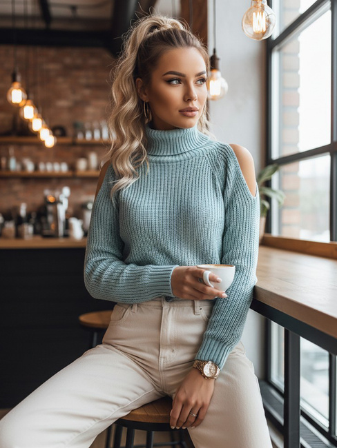 Női garbó pulóver ARIEL Szín Zöld DSTREET MY1699