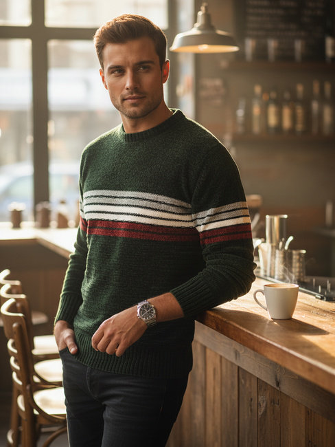 Férfi csíkos zöld pulóver Dstreet WX2280