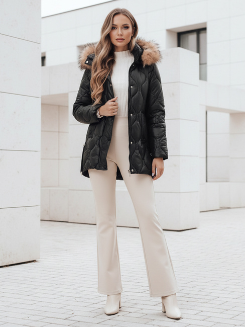 Női télikabát LUMORE steppelt kapucnival fekete Dstreet TY5015